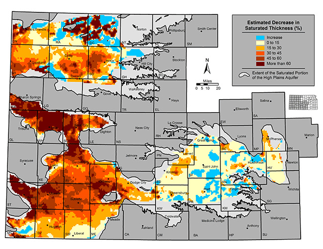 The map below shows just how uneven the Ogallala’s decline has been across western Kansas. In some areas, the aquifer has lost more than half its saturated thickness since irrigation began, while other pockets remain relatively stable. That patchwork of red and blue underscores why one-size-fits-all regulation won’t work. Local Enhanced Management Areas succeed precisely because they adapt to these differences.
